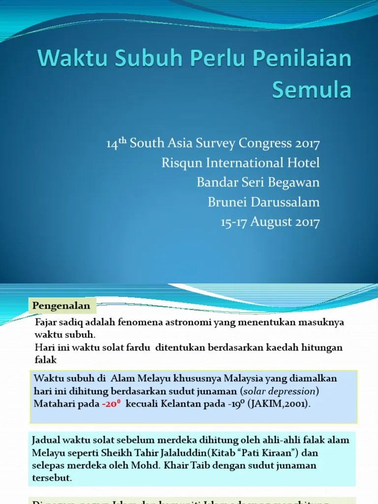 Hal ini disebabkan oleh faktor . Terutama bagi solat fardhu, waktunya ditetapkan mengikut peredaran matahari dan bukan mengikut selang masa yang tetap. Zon 2, ipoh, batu gajah, kampar, sg.